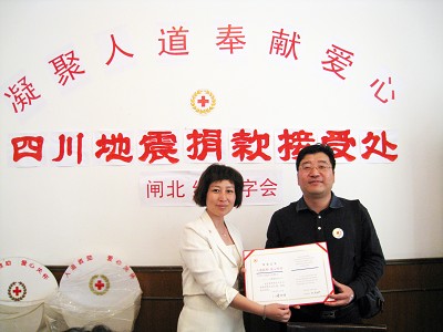 中國區銷售總監張松代表 Hans Beckhoff 先生向上海閘北區紅十字會捐款 100000元人民幣。
