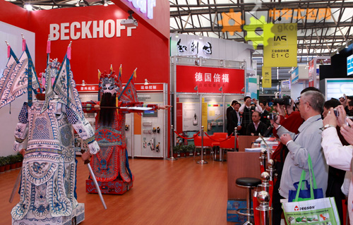 整個展會期間,德國倍福展臺上氣氛熱烈、人潮涌動。尤其給觀眾印象最深的是倍福與上海大學合作的機器人京劇表演。由Beckhoff提供運動控制技術,上海大學根據人體結構設計開發的機器人,在展臺上伴隨著國粹京劇唱腔表演了精彩的京劇武打戲,栩栩如生,人性化的設計展示了獨特的技術優勢,這也充分顯示出倍福在該領域的強大實力。