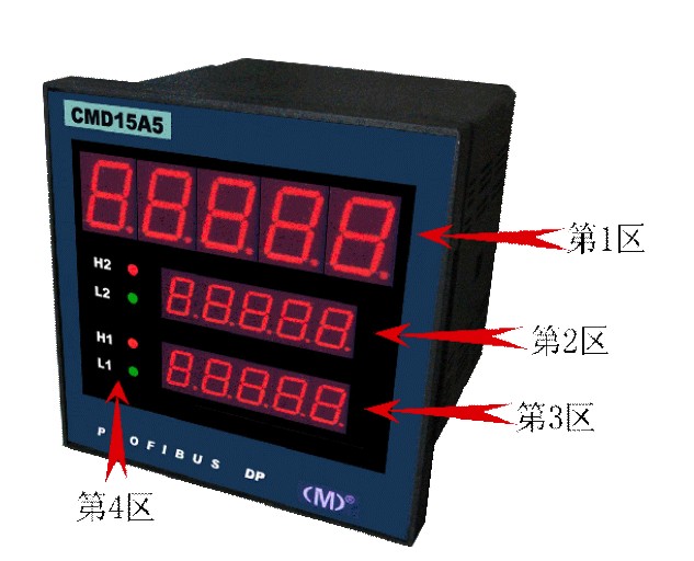| ● 從上至下共3組00000~99999顯示范圍,每組均帶正負(fù)號共15個擴展特殊符號顯示; |