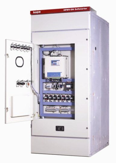完整的HPMV系列的軟起動器是一個標準的電機起動控制器,用來保護和控制中、高壓交流電機。完整的HPMV包括:隔離開關、保險絲、主真空接觸器、控制變壓器、控制模塊、可控硅模塊、高壓真空旁路接觸器。軟起動部分僅包括:控制模塊、可控硅模塊、高壓真空旁路接觸器。