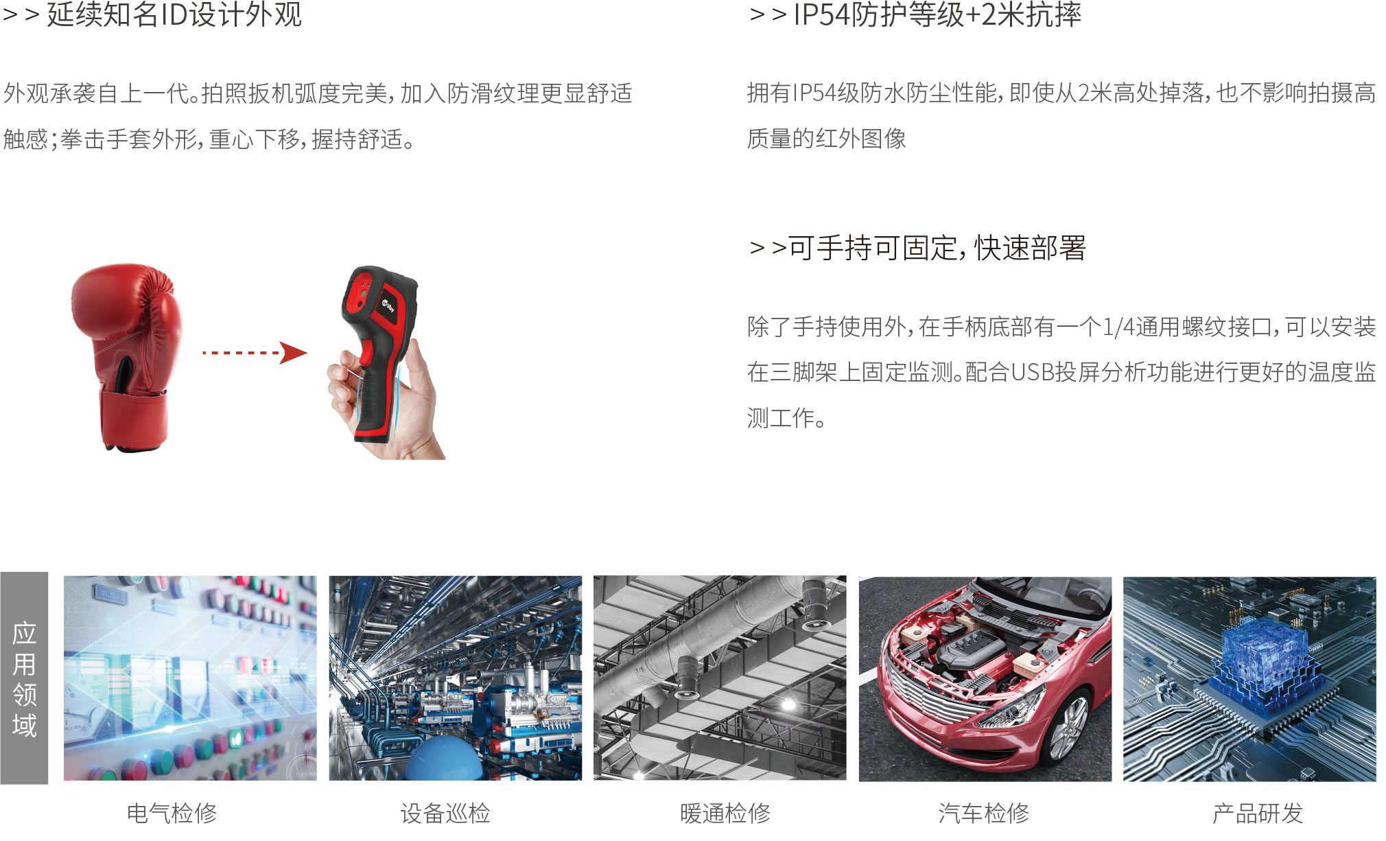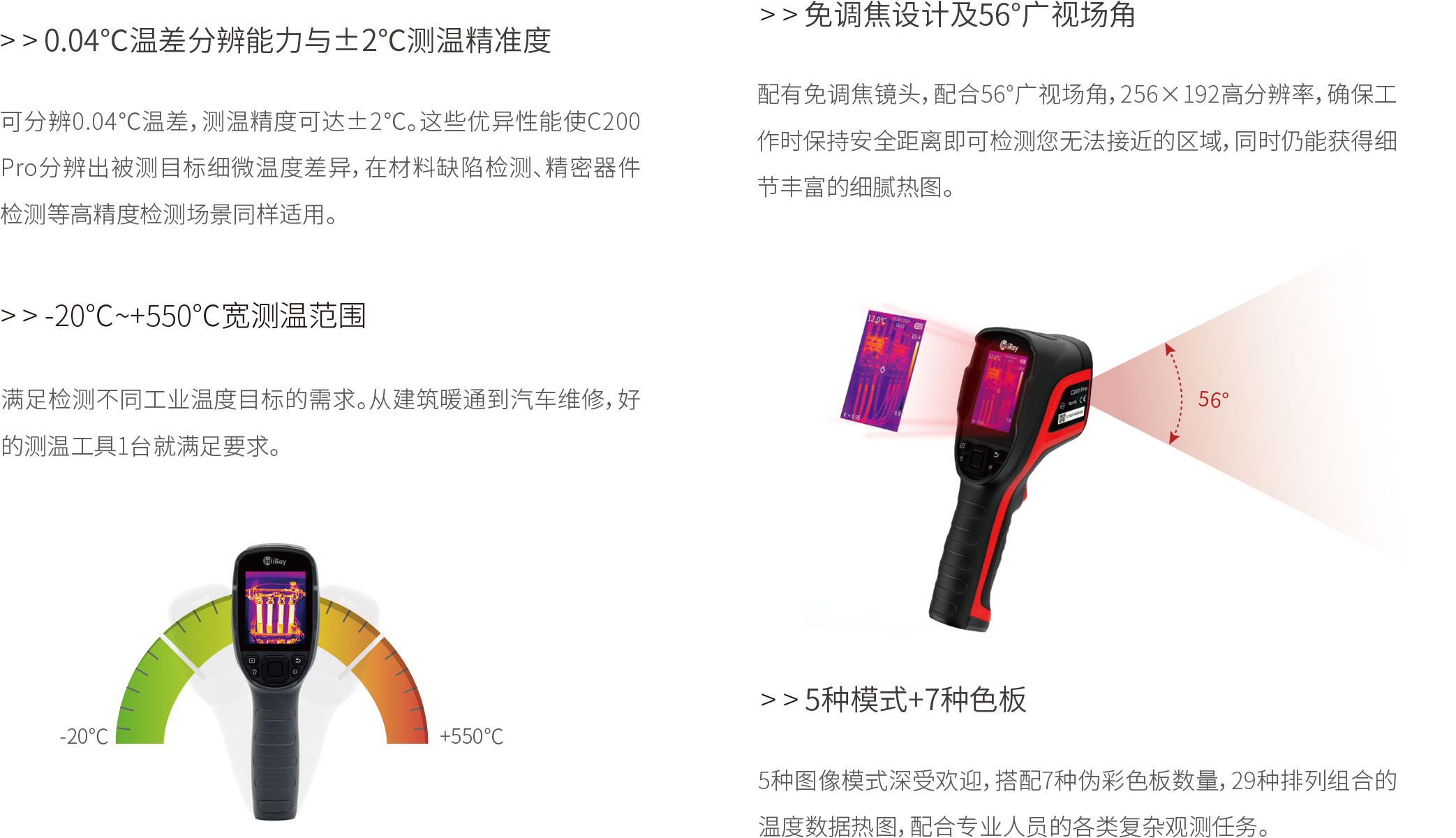 艾睿光電天樞C200 Pro手持測溫熱像儀是一款芯升級實力派紅外熱像儀。強大升級,助力提升工作效率:艾睿光電自研高性能12μm紅外核芯,256×192的高分辨率和0.04℃的溫度分辨力,仍然是它的“殺手锏”——為您提供細節豐富、測溫精準的紅外熱圖。Pro級200W可見光,Pro級低延遲,輕松應對Pro級工作需求。更不必說間隔拍照、15小時長續航、USB即插即分析的Pro級特性。天樞C200 Pro,實力派的全“芯”升級。