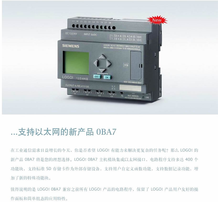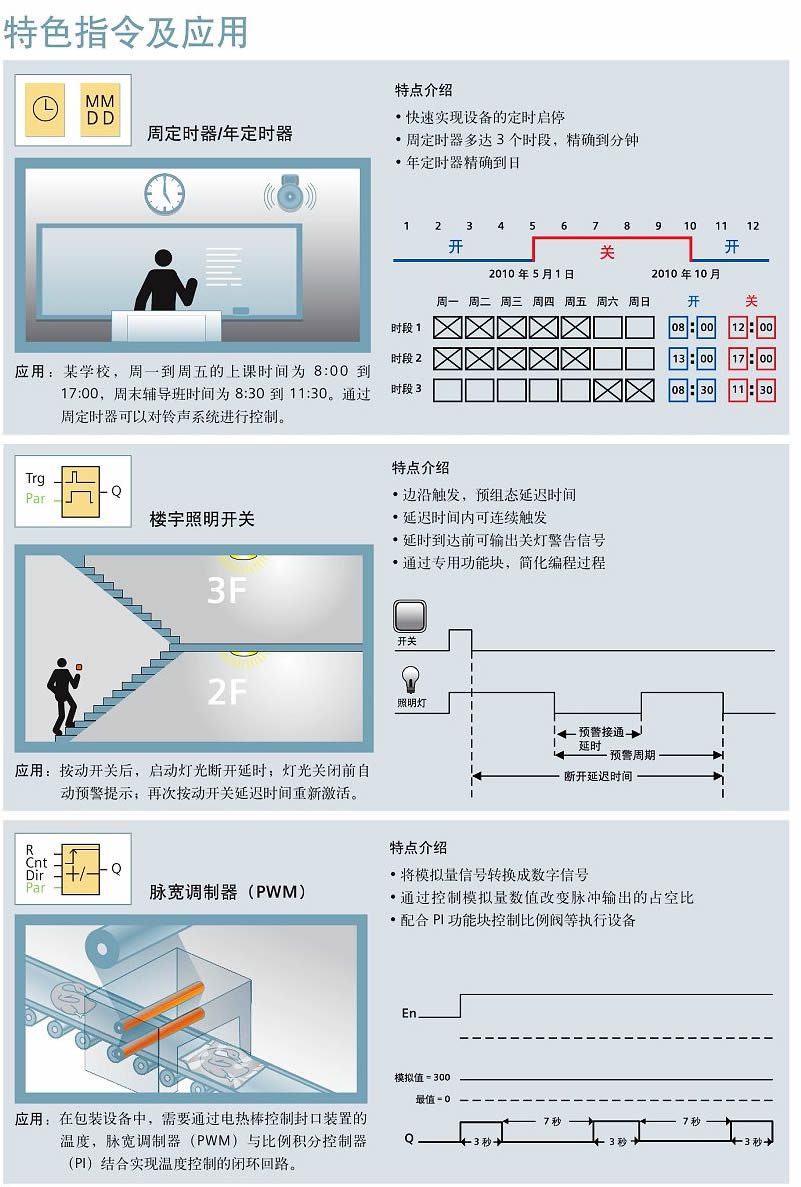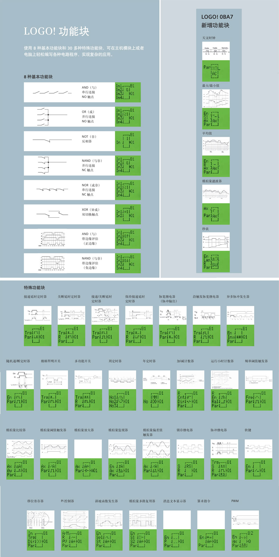 LOGO! 智能邏輯控制器填補了繼電器與PLC之間的技術空間,已發展成為模塊化的標準組件產品。通過集成的8種基本功能和30多種特殊功能,LOGO! 可以代替數以百計的開關設備,從時間繼電器一直到接觸器。LOGO! 有很好的抗振性和很強的電磁兼容性(EMC),完全符合工業標準,能夠應用于各種氣候條件。